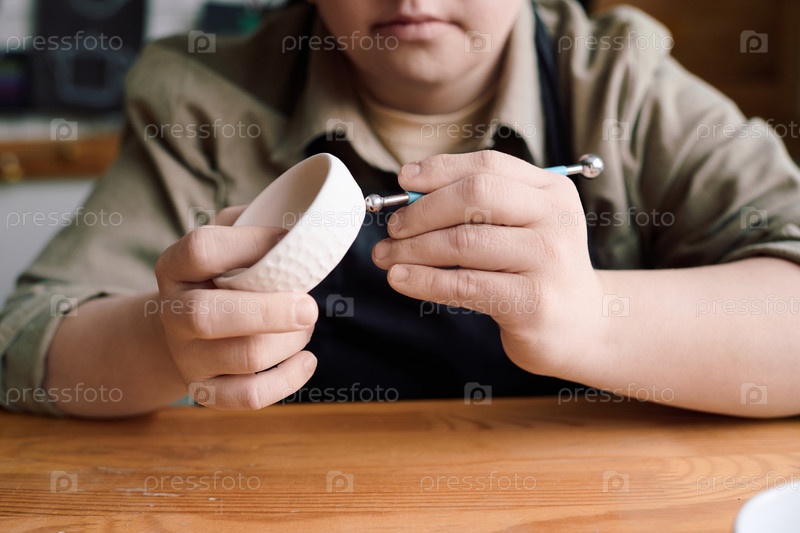 Женщина с синдромом Дауна, использующая инструмент моделирования шаров