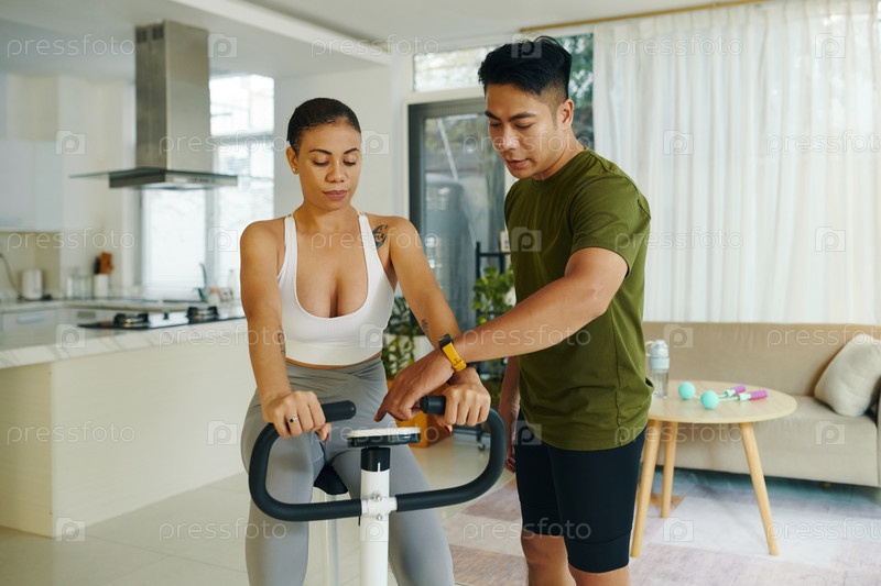Женщина, помогающая мужчине на велосипеде