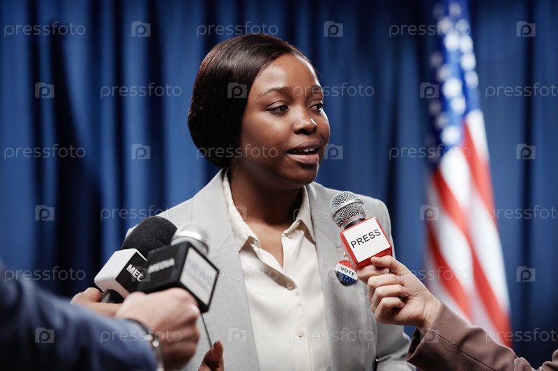 Женщина дает интервью журналистам