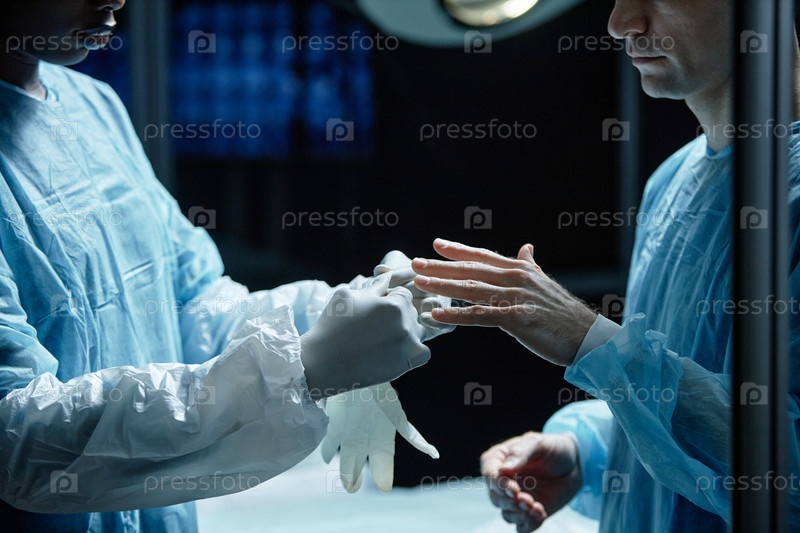Хирург надевает перчатки