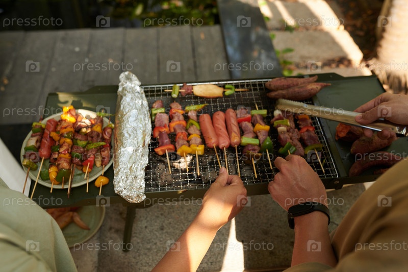 Пару мясных кебабов на гриле