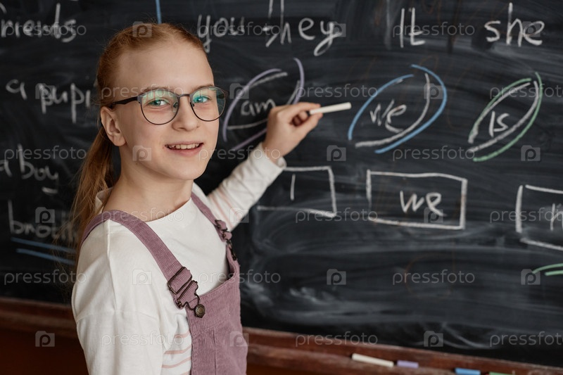 Ученица пишет на доске
