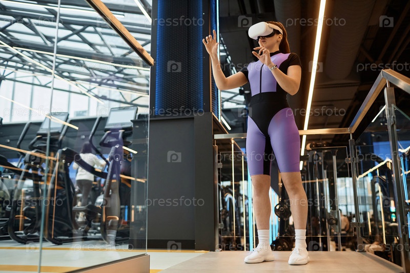Девушка, которая носит VR-гарнитуру на тренировке