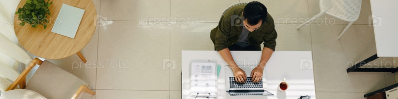 Работа онлайн на ноутбуке в офисе человек