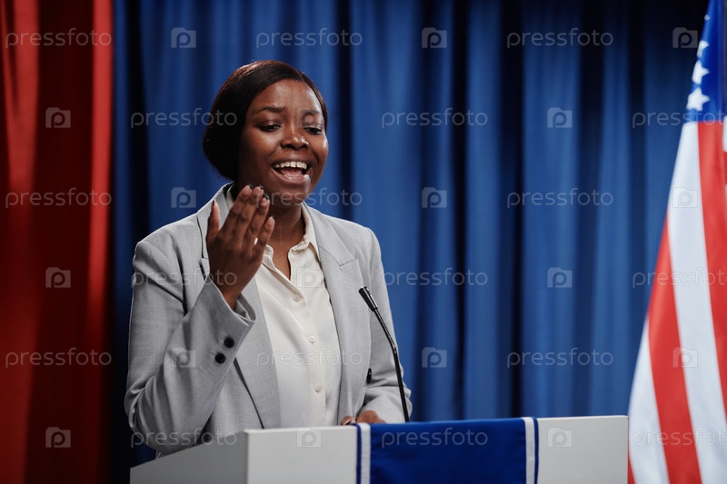 Женщина-министр, говорящая в микрофоне