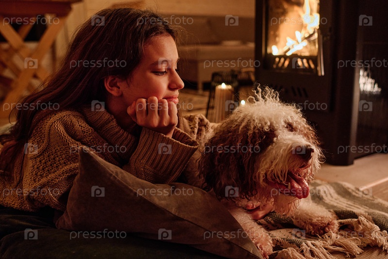 Подростковая девушка с домашним питомцем в вечернем современном