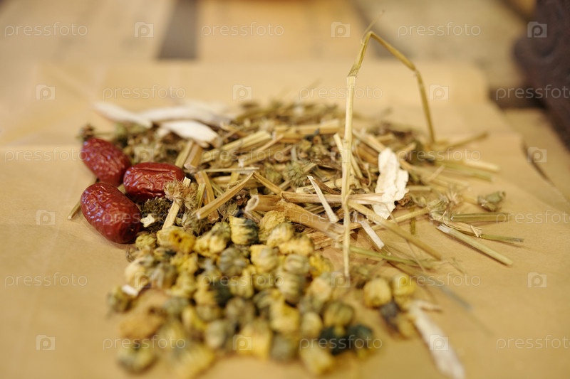 Сушеные травы и семена на столе