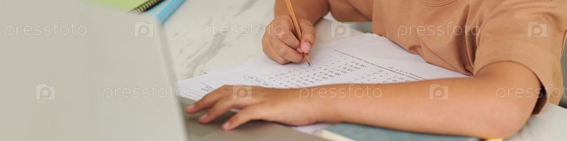 Мальчик, выполняющий домашнее задание по математике