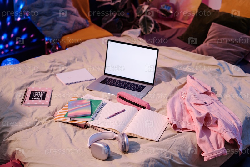 Ноутбук и ноутбуки на кровати