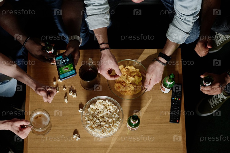 Непризнанные друзья смотрят футбольный матч
