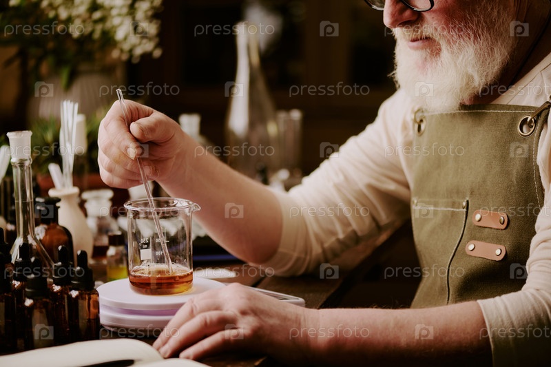 Парфюмер смешивает ароматическую жидкость в лаборатории
