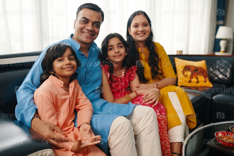 Индийская семья, проводящая время дома, счастлива