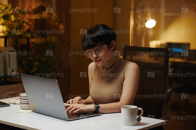 Женщина, работающая на ноутбуке в офисе