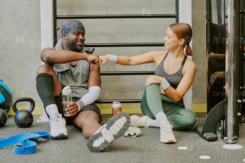 Мужчина и женщина празднуют конец тренировки
