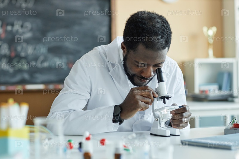 Молодой учитель химии использует микроскоп