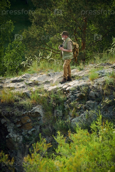 Натуралист в горах в летний день