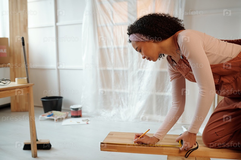 Женщина, принимающая меры по деревянной скамейке