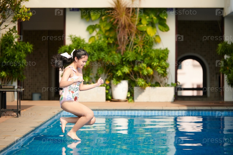 Игральная девушка прыгает в бассейне