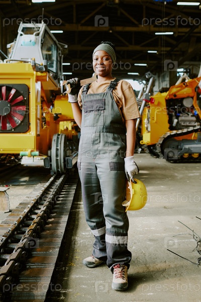 Уверенная женщина-техник на рабочем месте в фабрике