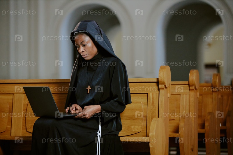 Черная монахиня использует ноутбук