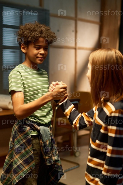 Мальчик приветствует своего друга рукопожатием