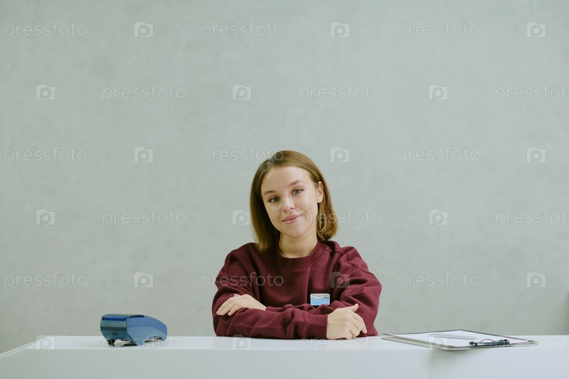 Работница, сидящая за столом
