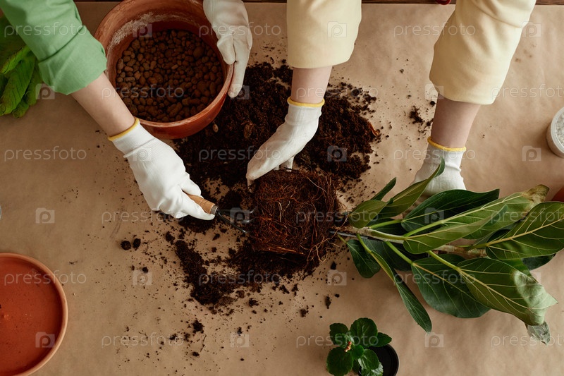 Пересадка зеленых растений top view