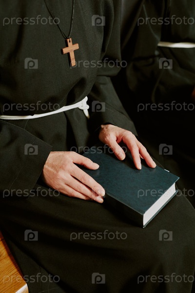 Непризнанная монахиня сидит на скамейке