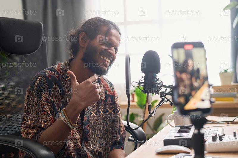 Исполнитель поет новую песню в микрофоне