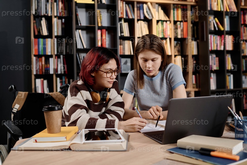 Репетитор работает со студентом в частной библиотеке
