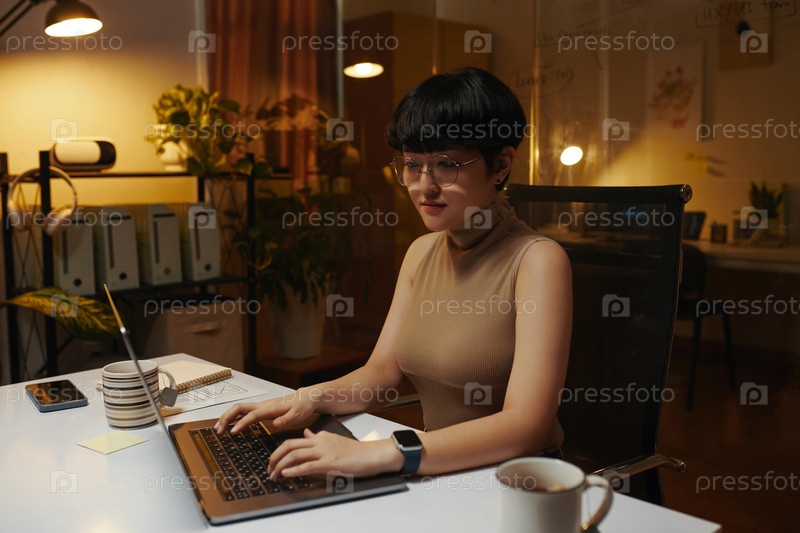 Маркетинговый менеджер работает на ноутбуке