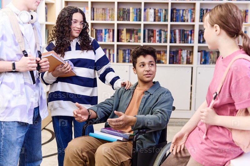 Инклюзивная группа студентов в библиотеке
