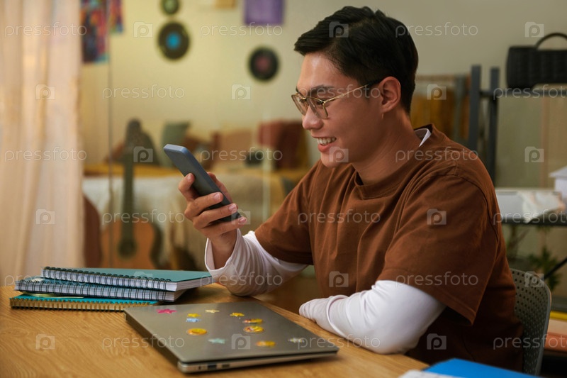 Студент смотрит смешные видео на телефоне