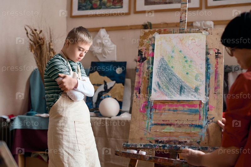 Мальчик с синдромом Дауна в классе искусства