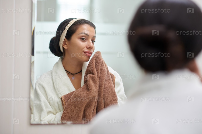 Женщина, стирающая лицо полотенцем