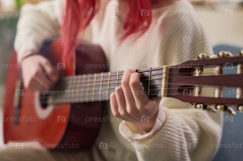 Женская исполнительница играет на акустической гитаре