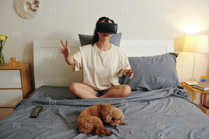 Женщина, играющая в игру в очках VR Woman