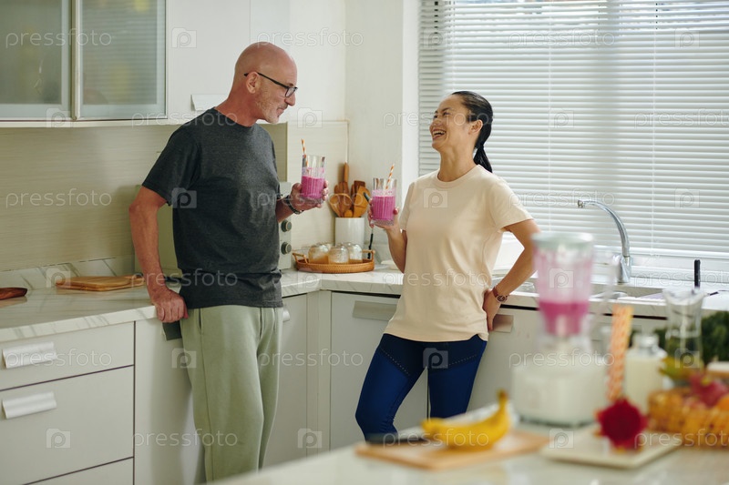 Зрелая пара пьет смузи