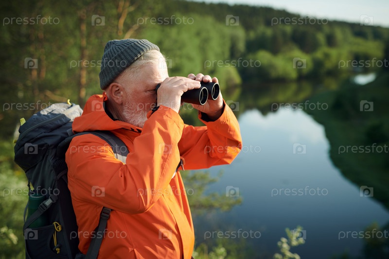 Турист, использующий бинокль Мужчина