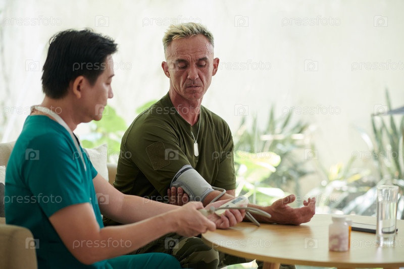 Солдат проверяет свое здоровье в больнице