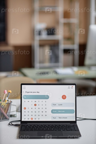 Компьютерный компьютер на рабочем столе отображение календаря страница на экране ноутбук