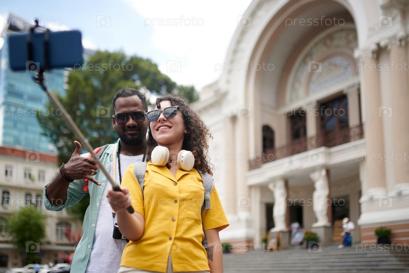 Туристы фотографируются во время экскурсии