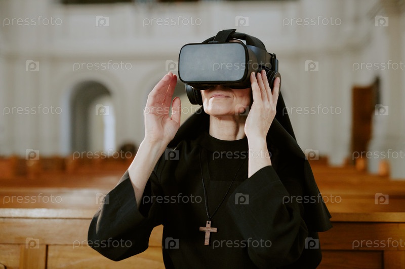 Монахиня включает современные VR-гарнитуры