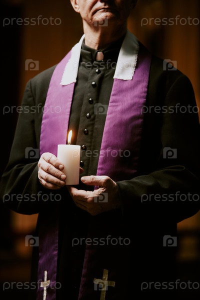 Пастор, держащий свечу в руках