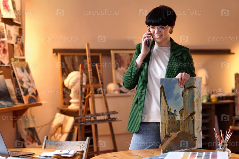 Эксперт по искусству разговаривает по телефону