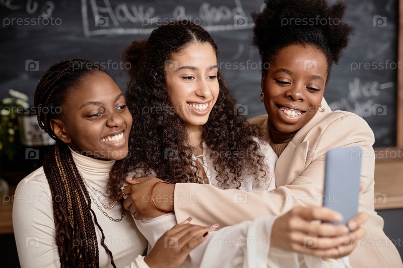 Мультиэтнические друзья фотографируются вместе