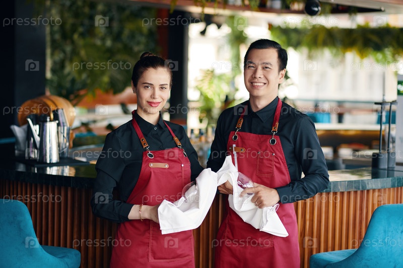 Официанты убирают стеклянную посуду в кафе