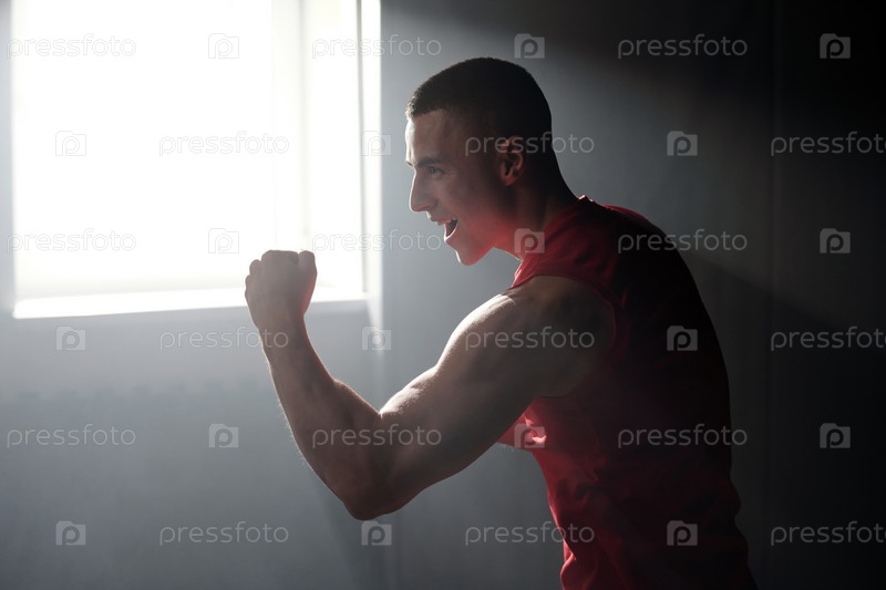 Молодой успешный спортсмен тренируется