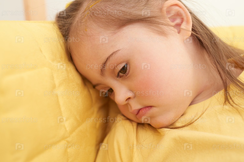Милая девочка с синдромом Дауна, лежащая