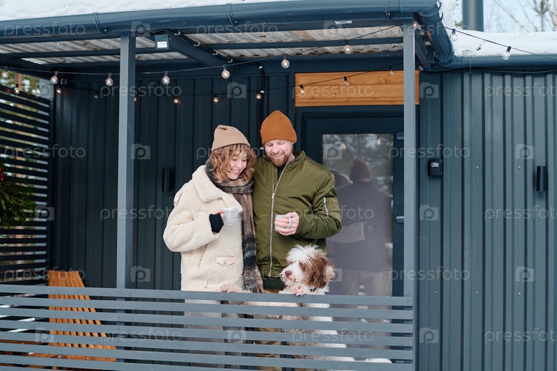 Пара с собакой в зимний день